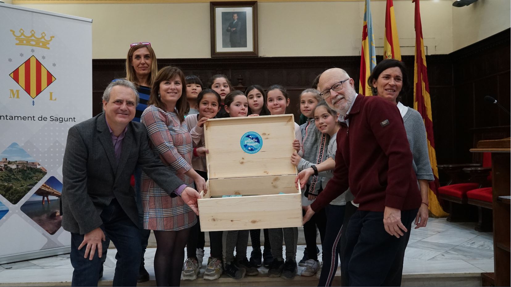 El eje de la campaña “La mar de Sagunt. Missatge en una botella” son dos cofres que viajarán a los 14 colegios participantes con una misión integradora, tanto de centros de Sagunt como del Port de Sagunt para concienciar acerca de la situación actual del medio marino. Los cofres constituyen, así, un material didáctico adaptado al nivel escolar e incluyen una gran botella de cristal reciclado sobre un lecho de arena de playa, restos biológicos encontrados en la playa (huevos de tiburón y raya, posidonia y huesos de sepia y bivalvos) y un cuaderno de bitácora en el que los escolares documentarán el “viaje” de la botella.