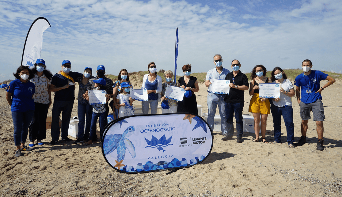 Tras la explicación de la labor de la Fundación Oceanogràfic y también de los trabajos de conservación del ARCA del Mar, dos miembros de cada uno de los cinco hospitales procedieron a soltar uno de los quelonios que, como es costumbre en estas sueltas, fueron “bautizados”, en esta ocasión con los nombres de los centros hospitalarios.