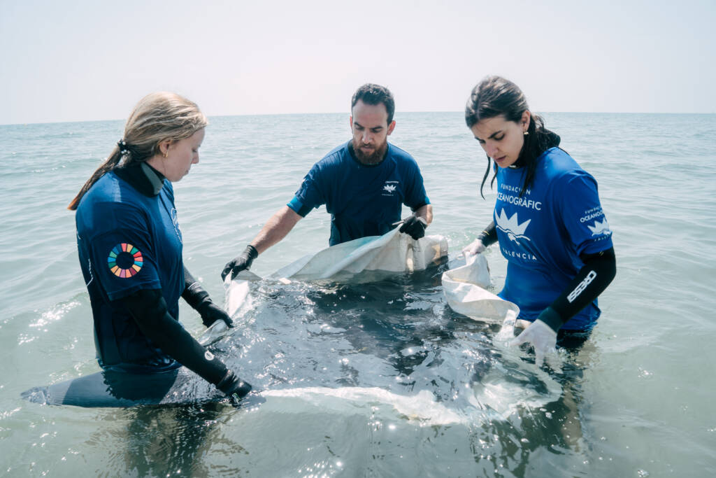To do this, it is essential that you call the emergency number, 112, in order to activate the Stranding Network of the Comunitat Valenciana. Be patient before taking any action, as the rescue team of the Oceanogràfic Foundation and the Universitat de València will contact you to indicate the steps to follow.