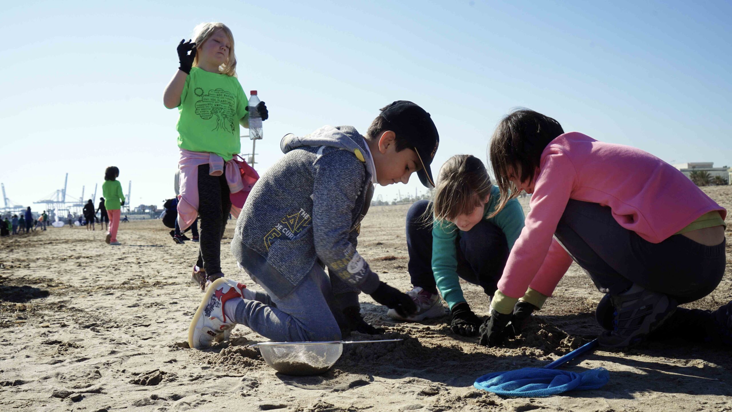 Unos 75 escolares del CEIP de la Pobla de Vallbona participan en la limpieza de playa y suelta de tortuga organizada por la Fundación Oceanogràfic